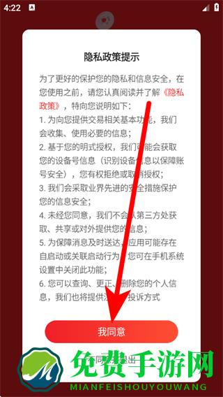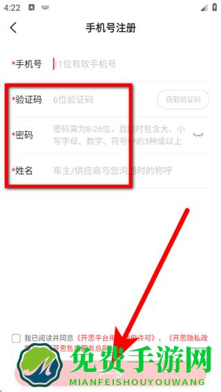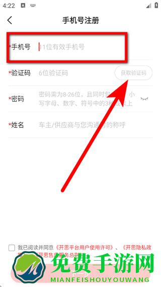 1、打开开思汽配,在隐私政策提示页面,点击我同意,进入登录界面。