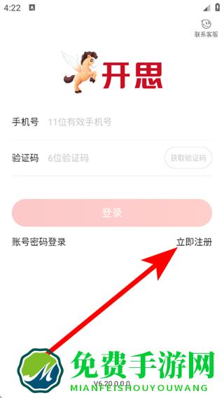 2、在登录界面点击立即注册,进入手机号注册页面。