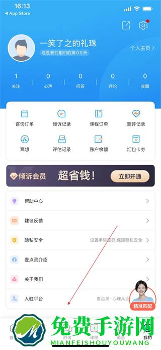 1、在壹点灵的首页,点击底部我的选项,进入个人中心页面。