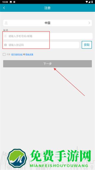 3、进入注册的界面内,输入手机号、验证码再点击下一步即可。