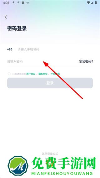 4、在密码登录界面,输入手机号和对应的密码,勾选相关协议后点击登录,即可完成密码登录操作。
