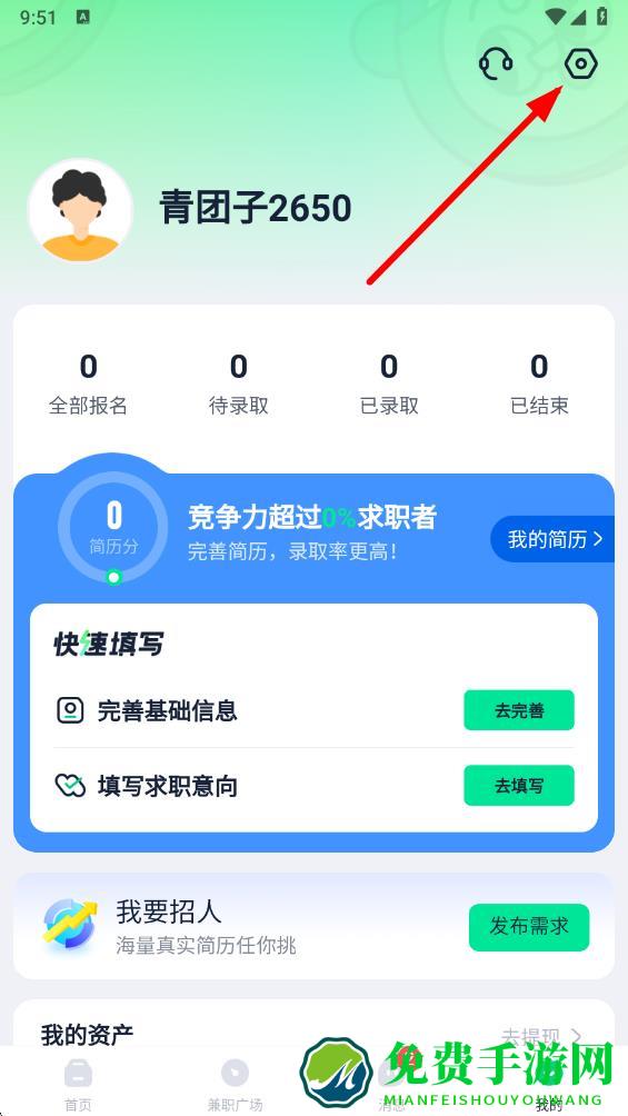 1、在青团社兼职app界面点击我的选项,进入个人页面。