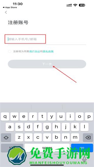 2、在注册账号页面,输入手机号或邮箱,点击下一步的按钮。