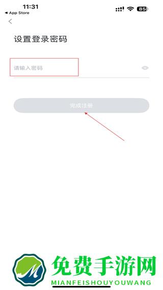 4、进入设置登录密码页面,输入想要设置的登录密码,点击完成注册按钮。