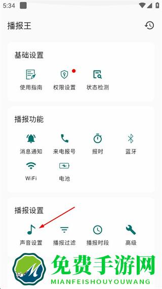 2、在主界面的播报设置区域,找到声音设置选项,点击后进入对应的设置页面。