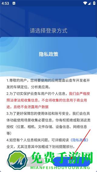 1、在隐私政策弹窗中,点击同意该政策内容,进入登录方式选择页面。
