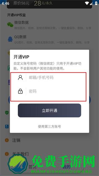 3、在开通VIP弹窗里,填写对应的邮箱或手机号码,再输入设置好的密码。