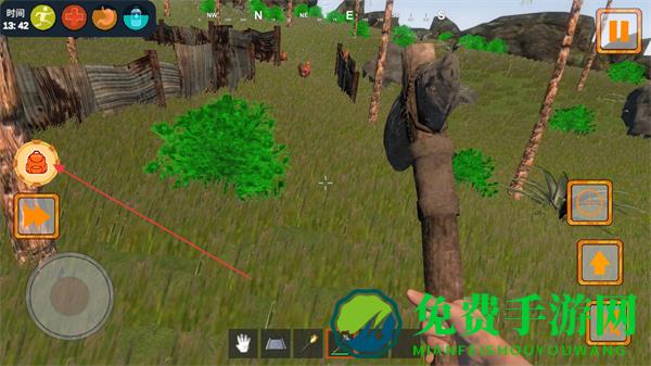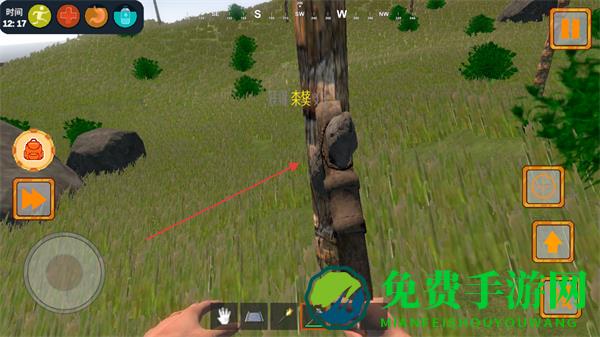 1、移动角色靠近树木,使用工具采集木柴等资源,积累生存材料。