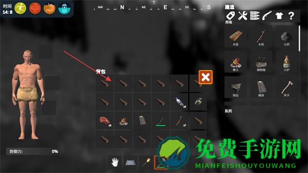2、打开背包界面,查看已收集的资源如木头、工具,管理物资库存。