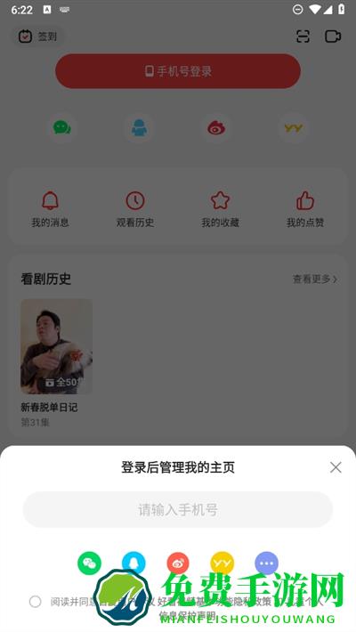 2、点击我的页面后,若未登录,会自动弹出登录界面,填写手机号以及勾选隐私政策。