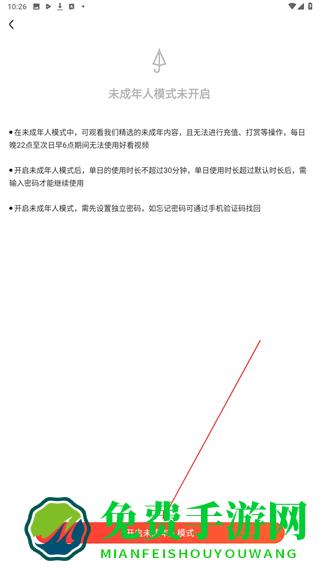 4、在未成年人模式的页面内,熟知后点击开启的按钮即可。