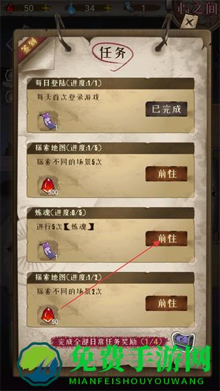 1、在任务界面,点击炼魂任务的前往,进入对应玩法界面。