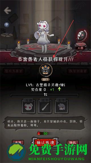4、炼魂后愚人品格提升至LV1,解锁对应属性加成,完成本次炼魂流程。