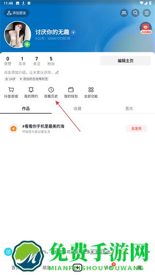 2、进入我的页面内,找到并点击观看历史的按钮。