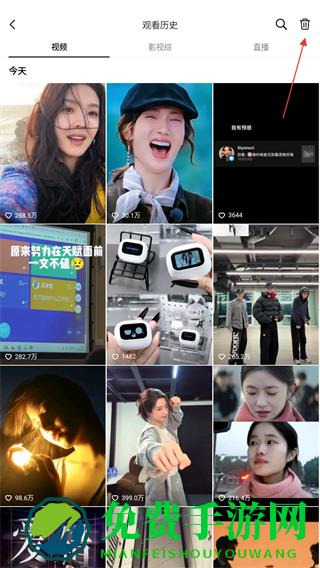 3、进入观看历史的页面内,点击右上角删除的图标。