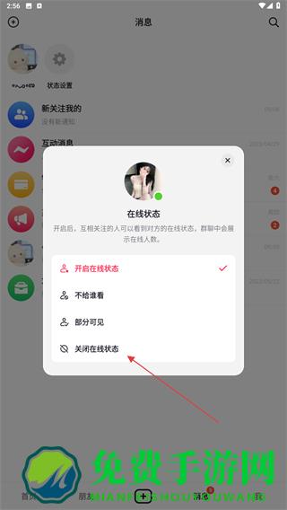 3、在弹出的在线状态界面内,点击关闭在线状态即可。