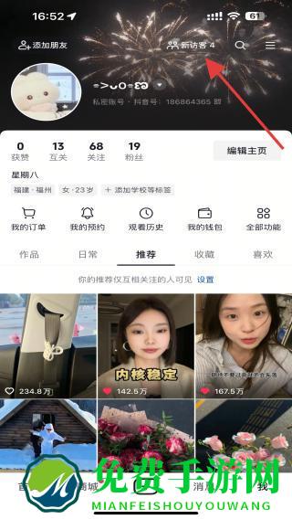 2、在个人主页的右上角,用户需点击主页访客按钮。