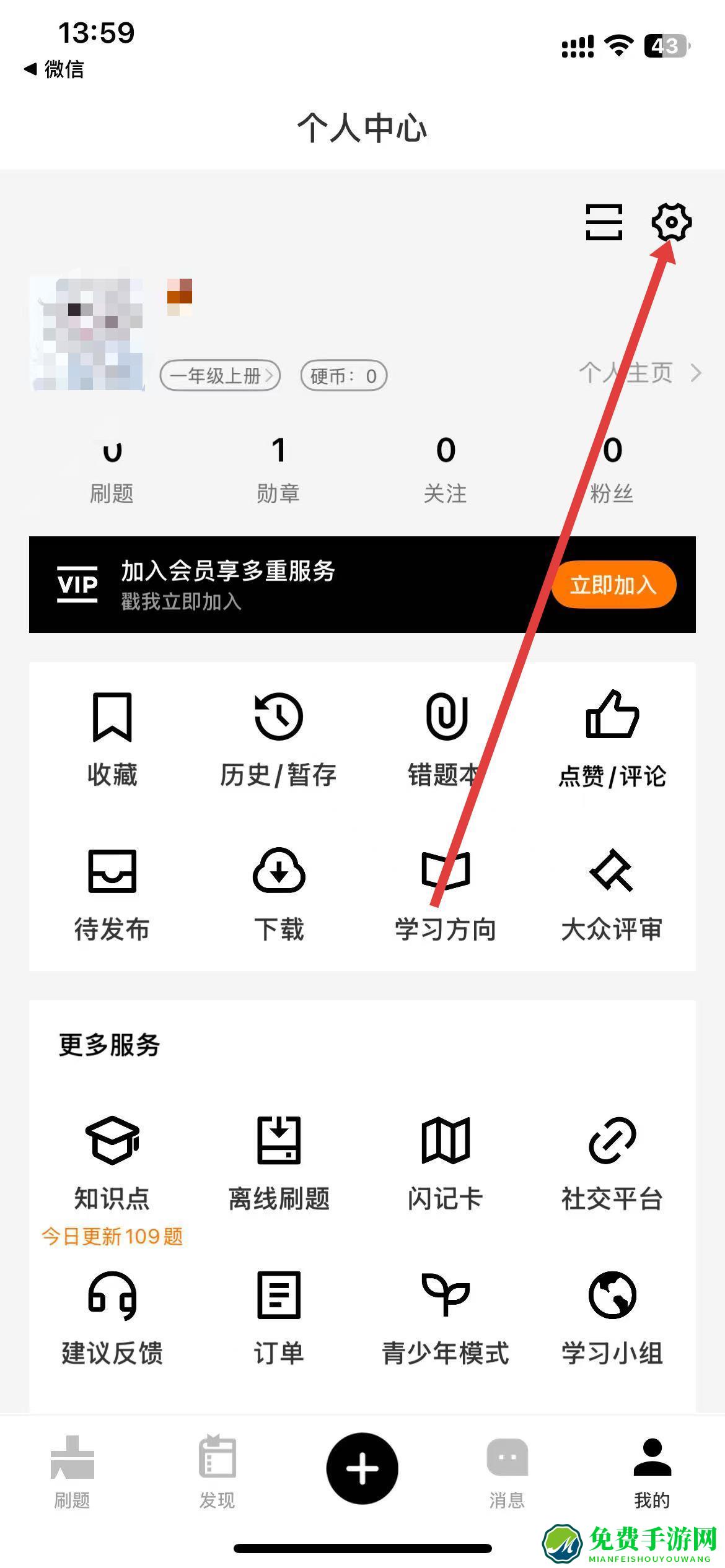 1、进入app点击我的,在个人中心页面点击设置图标,进入资料管理页面。