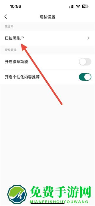 3、在隐私设置页面,点击已拉黑账户选项,进入黑名单页面。