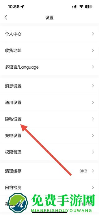 2、在设置页面,点击隐私设置选项,进入隐私设置页面。