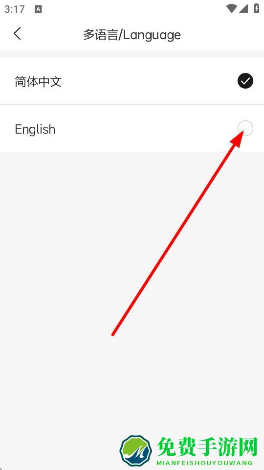 4、在多语言选择界面,点击选择English或其他所需语言,即可完成语言设置。