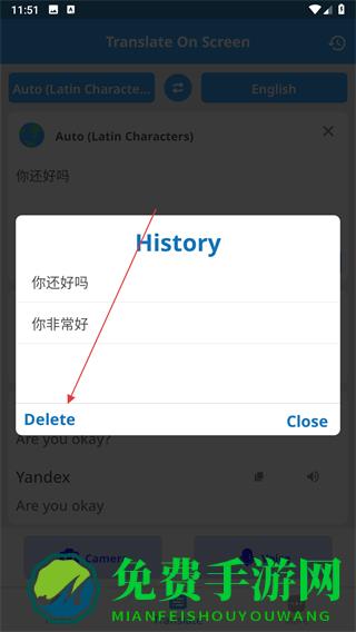 2、在翻译页面点击右上角的历史记录图标,弹出包含过往翻译内容的历史记录窗口。