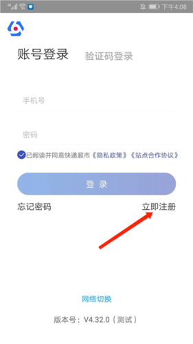 1、打开兔喜快递超市app,进入应用登录界面,选择【立即注册】选项,