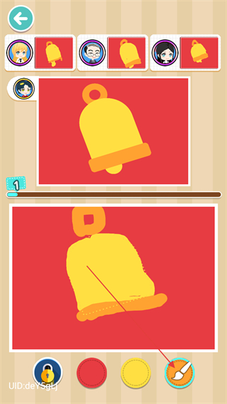 1、使用下方工具绘制上方的铃铛图案,完成画作匹配。