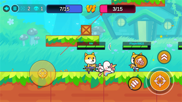 1、操控移动键调整角色位置,点击攻击键攻击敌方,开启对战积累击杀数。
