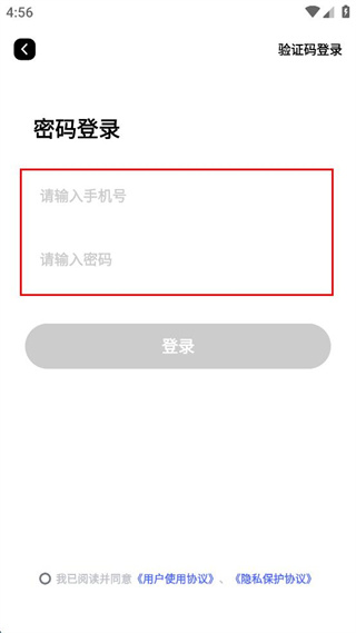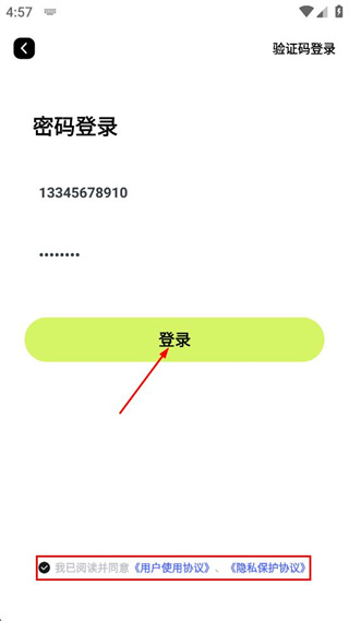 4、勾选同意用户使用协议及隐私保护协议的选项,点击登录按钮完成账号登录。