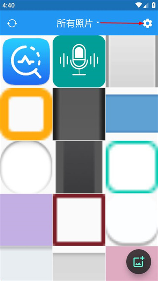 1、打开图片编辑软件,进入所有照片页面,点击右上角设置图标进入设置界面。