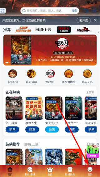 1、在万达电影应用界面底部,点击我的选项进入个人相关页面。