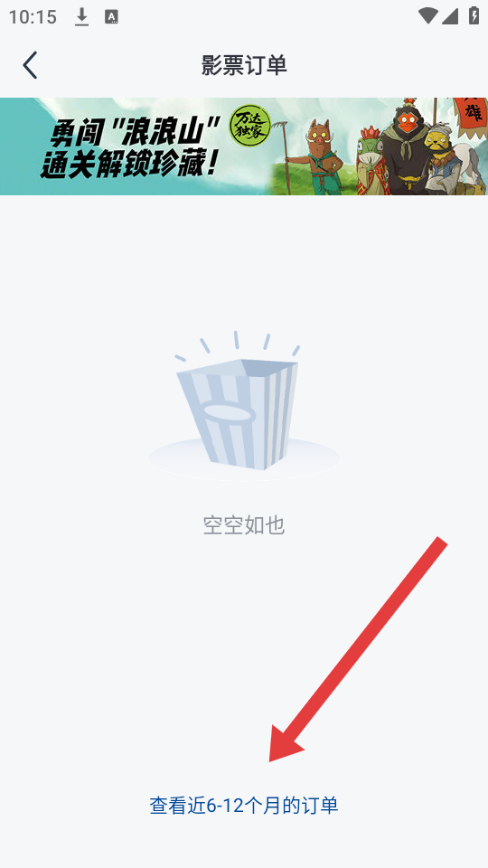 2、在影票订单的页面底部,可以点击查看近6-12个月的订单链接,加载更多的历史订单记录。