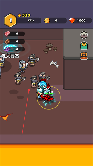 1、操控史莱姆移动,完成解救英雄的目标,推进关卡流程。