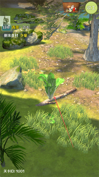 1、查看目标需收集4份青菜,在场景的草丛区域寻找青菜资源。