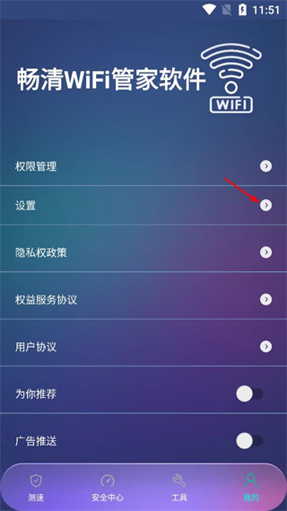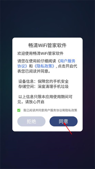1、打开畅清WiFi管家软件,勾选协议后点击同意按钮,进入软件主界面。