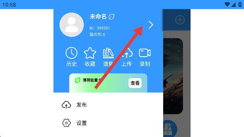 1、打开乱弹琴,点击界面上方的个人头像图标。
