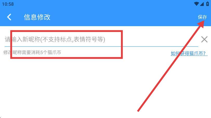 4、输入新昵称,点击保存,即可完成昵称修改。