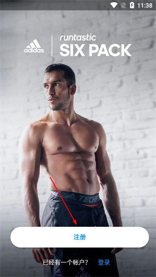 1、打开六块腹肌锻炼app的初始页面,点击注册,进入注册信息填写界面。