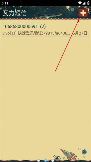 1、打开瓦力短信,找到页面右上角的加号按钮,点击该按钮进入新短信编辑页面。