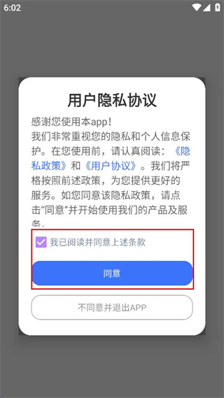 1、打开文件管理,勾选我已阅读并同意上述条款,点击同意按钮进入软件。