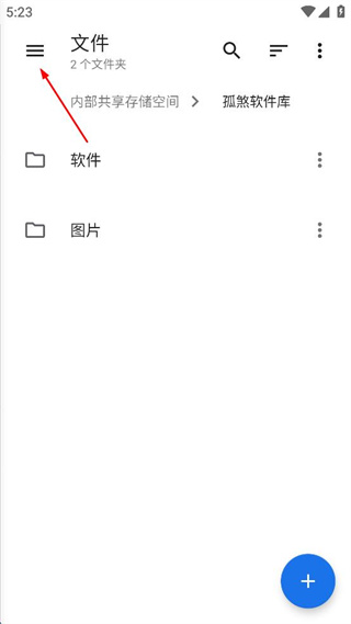 1、打开文件管理软件的文件界面,点击左上角的菜单按钮,展开功能选项列表。