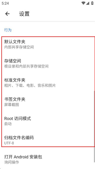 3、在设置页面查看默认文件夹、存储空间等各项配置的当前状态信息。