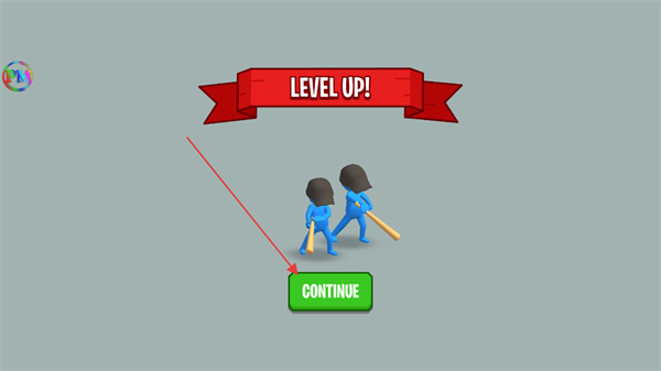1、界面显示LEVELUP!,点击CONTINUE按钮,可继续推进游戏进程。