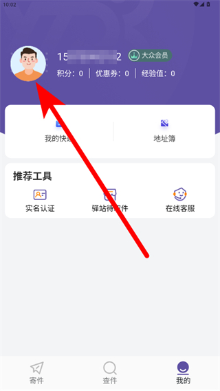 1、打开圆通速递APP,点击右下角我的,进入个人页面。