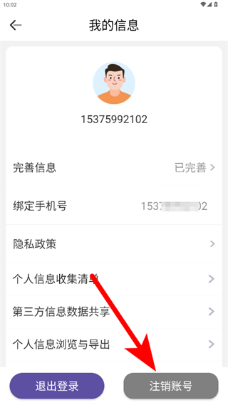 3、在我的信息页面,点击注销账号选项,进入注销说明页面。