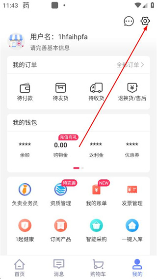 1、打开1药城APP,点击底部我的,进入个人页面。