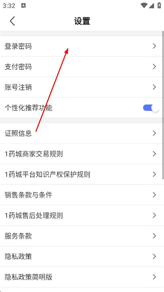 3、在设置页面点击登录密码,进入修改密码页面。