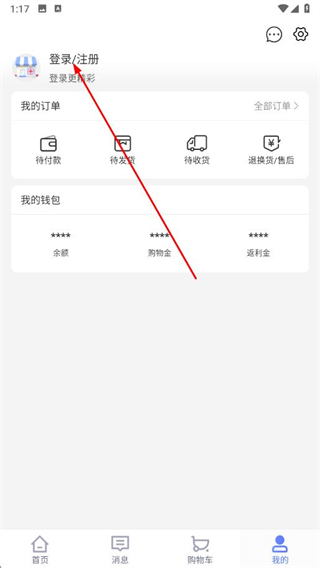 2、在我的页面中,点击登录/注册选项。