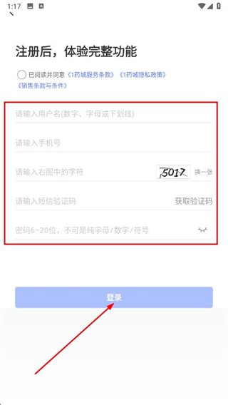4、输入用户名、手机号等信息,勾选服务条款,点击登录按钮。